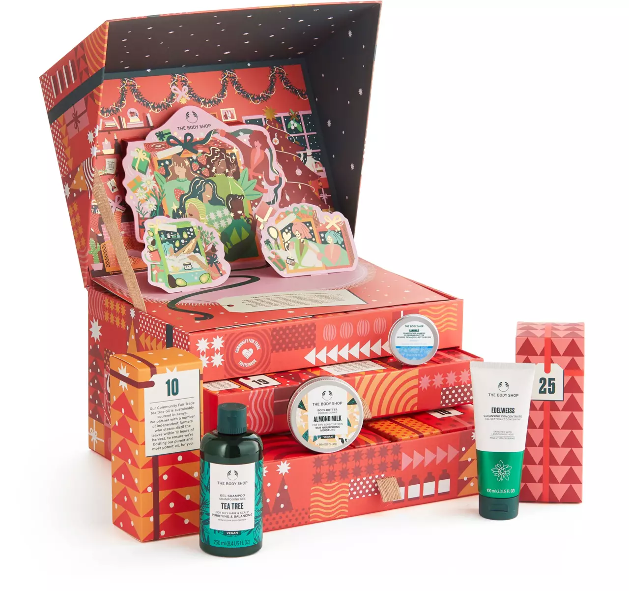 Here is my 2019 Advent Calendar: Dream Big Deluxe Advent Calendar of The Body Shop!. The packaging is really cute and huge! it is a small festively decorated house complete with its own female Santa riding in a space rocket (LOL so cute!) you’ll find an incredible collection of 25 treats inside and its not the same with other advent calendar you usually buy, because here the item is packed beautifully into individual boxes which slot together perfectly inside that small house. What I noticed in this Calendar is that, once you’ve opened each of your boxes, you need to replace them the other way round in your calendar to reveal a secret, inspirational message! (see picture above). How cool is that right?.
